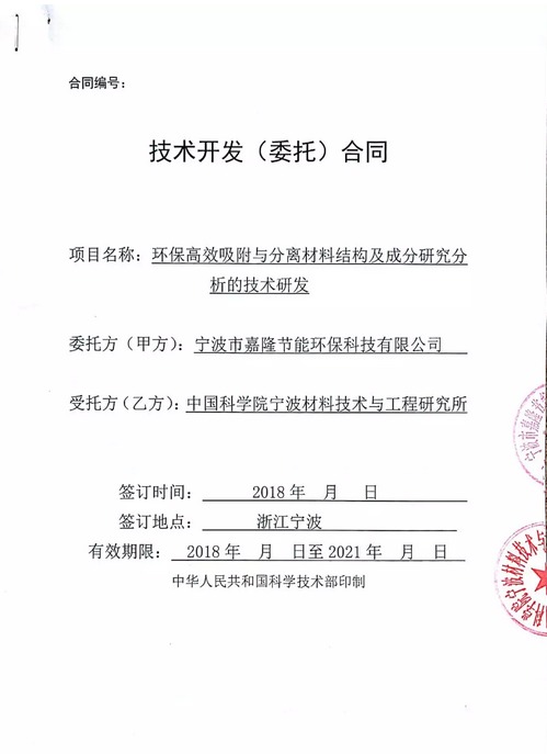 宁波市嘉隆节能环保科技有限公司(以下简称“公司”)于近日与中国科学院宁波材料技术与工程研究所签署了《环保高效吸附与分离材料结构及成分研究分析的技术研发》。合同签署后公司与中科院进行了深入的沟通,启动了相关项目的科研工作,现将合作环保高效吸附与分离材料结构及成分研究分析的技术研发项目的相关事宜公告如下: